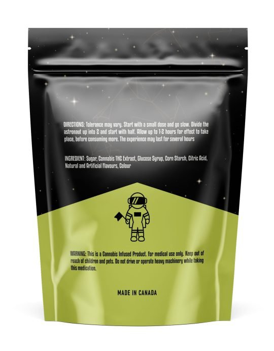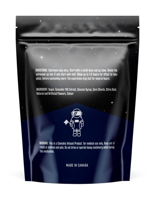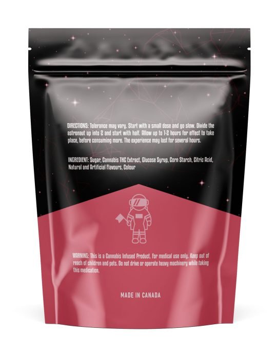 Ingredients: Sugar, Cannabis THC Extract, Glucose Syrup, Corn Starch, Citric Acid, Natural and Artificial Flavours, Colour.