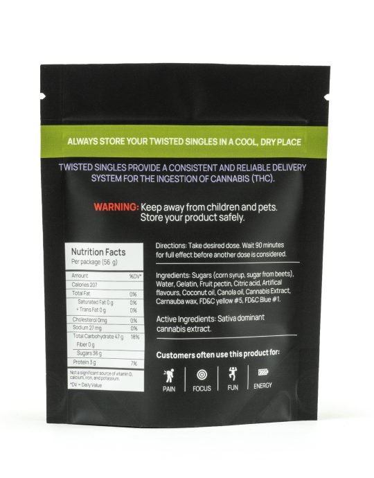 Twisted Extracts Sour Blue Raspberry Twisted Singles – Indica (160mg THC)